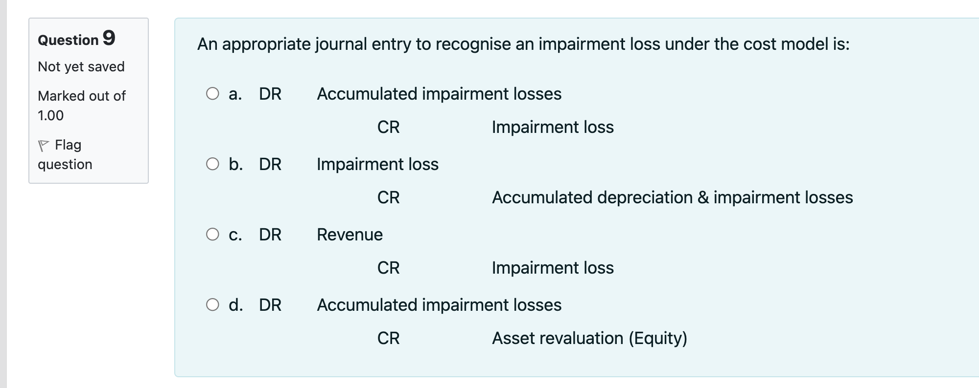 In this journal entry. Please record the journal entry of impairment loss. Dr Impairment loss 10 Cr Accum.
